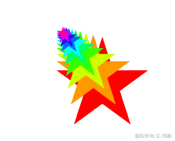 - 绘制嵌套彩色五角星(大小逐层递减)